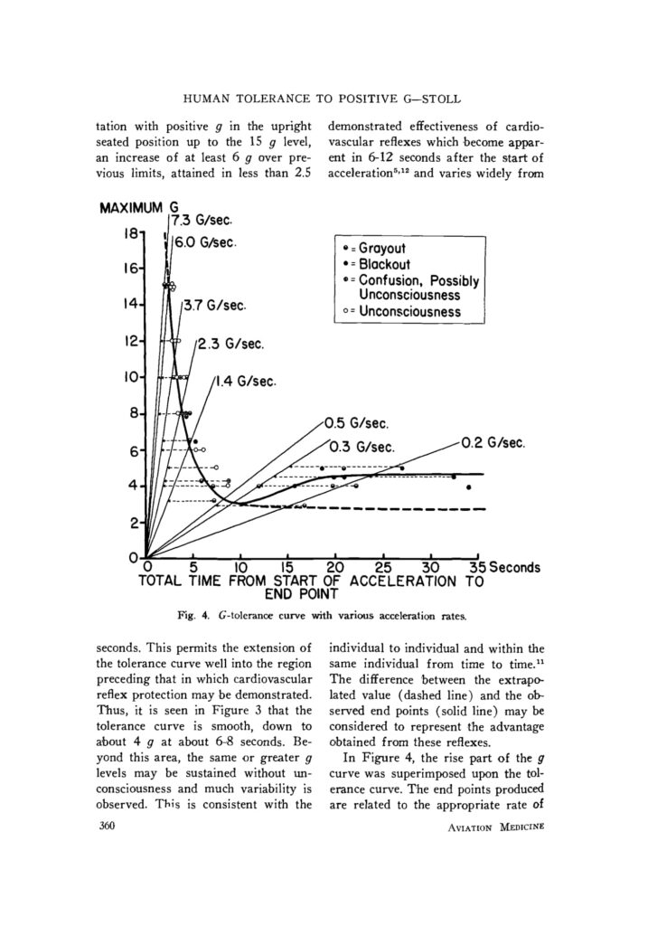 That reanalysis became what is now known as the Stoll Curve, a foundational model in acceleration physiology that continues to be cited in aerospace medicine literature today.