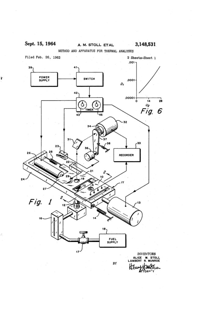 Stoll spent the bulk of her career at the Naval Air Development Center studying thermal injury and heat resistant materials. She systematically evaluated a wide range of high temperature filaments, many developed by DuPont, measuring how heat moved through cloth and into skin.